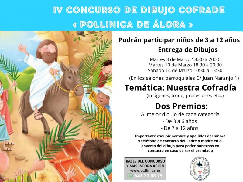 Nuestra Cofradía convoca la segunda edición del Concurso de Dibujo Cofrade «Pollinica de Álora» en el que podrán participar todos los que los niños y