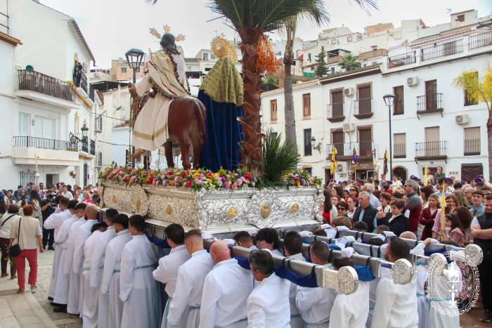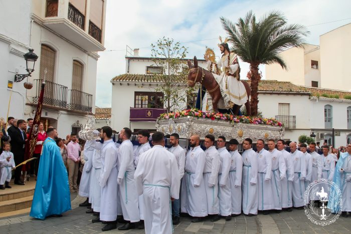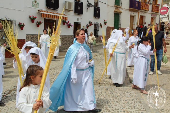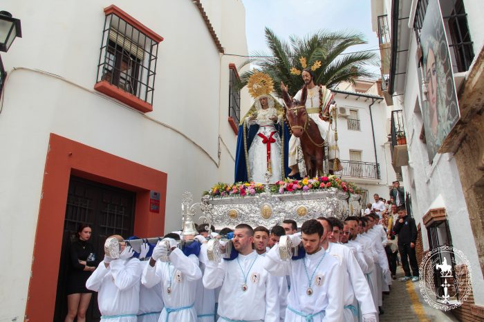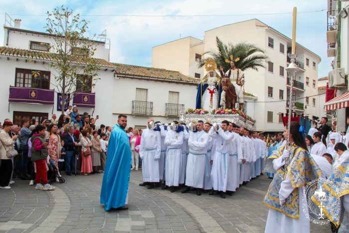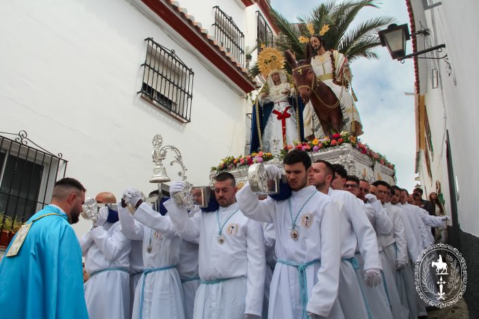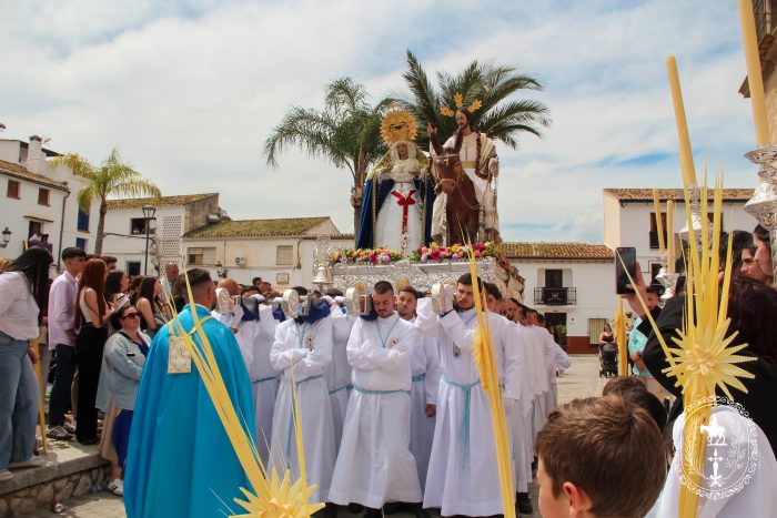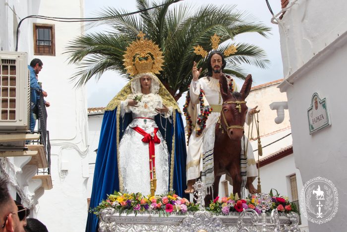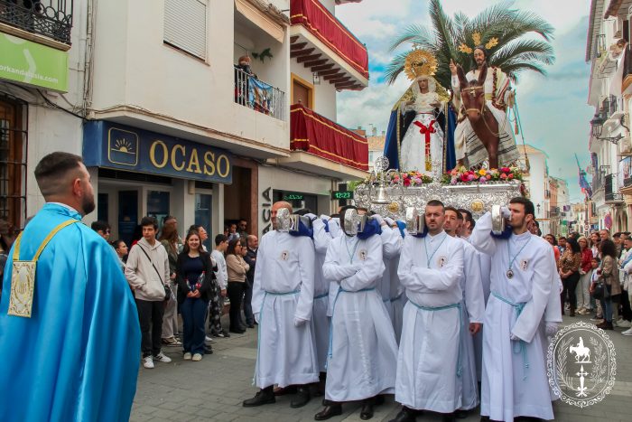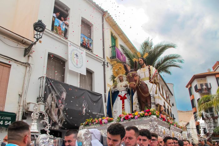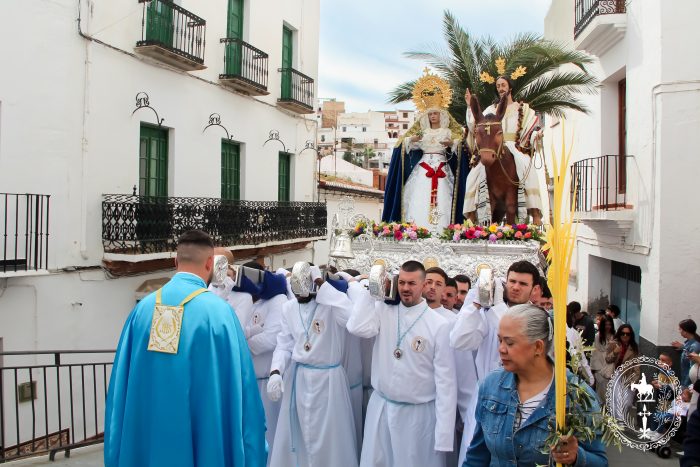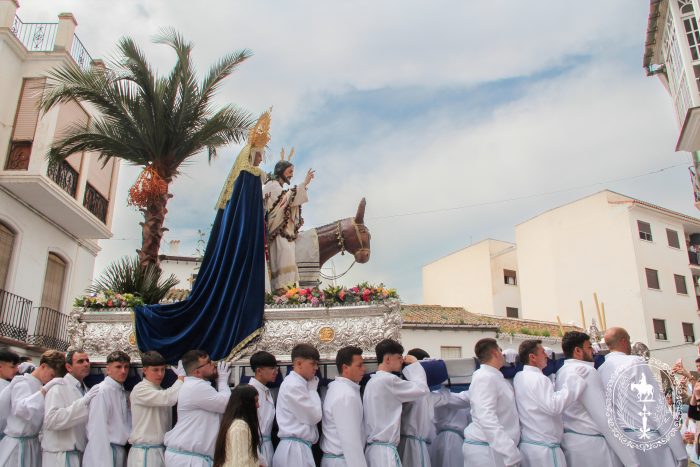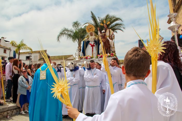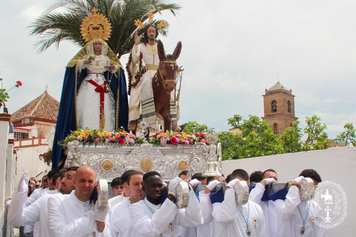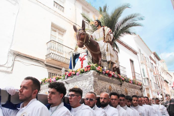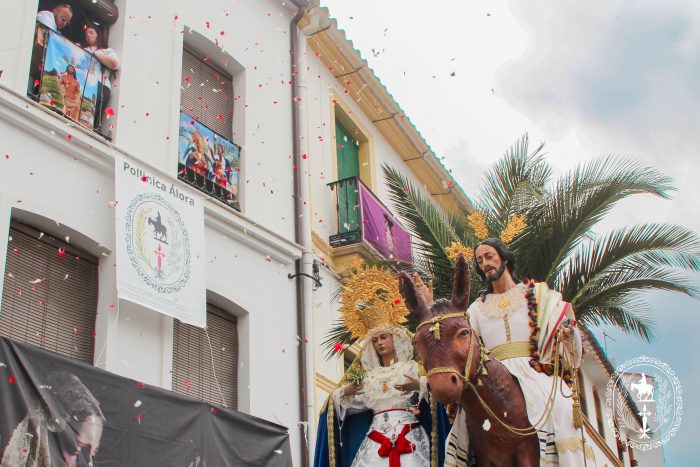 Pasadas las once y media de la mañana iniciábamos la salida procesional de Nuestro Padre Jesús a su entrada en Jerusalén y María Santísima del Amparo Auxiliadora por las calles de nuestro pueblo, siendo la primera procesión de Semana Santa de Álora 2025