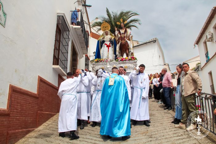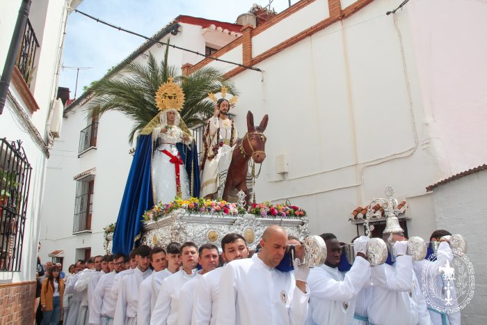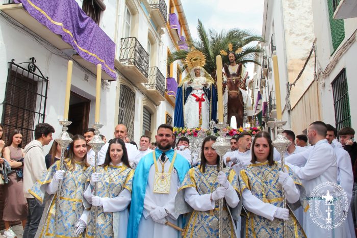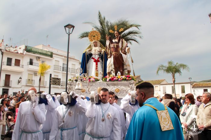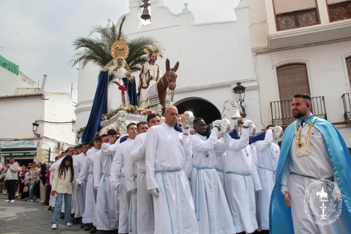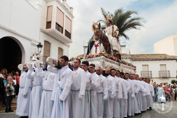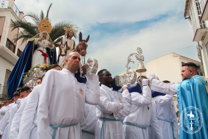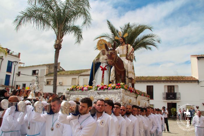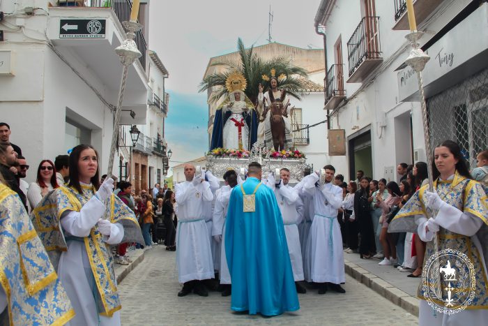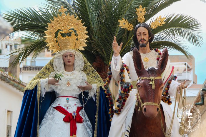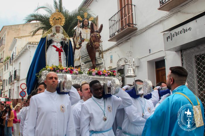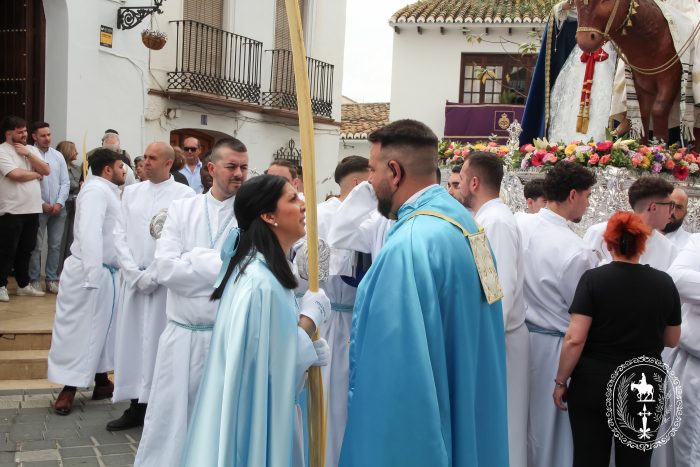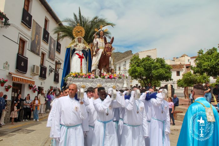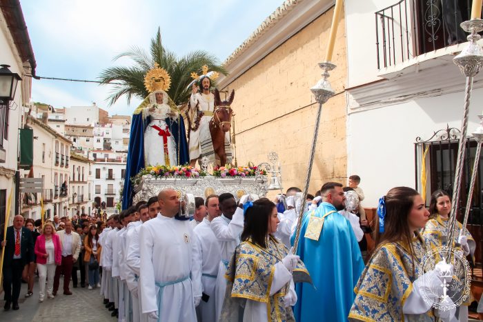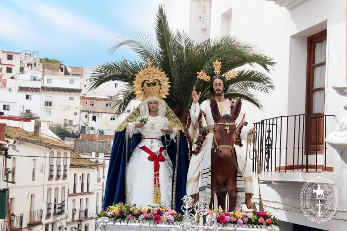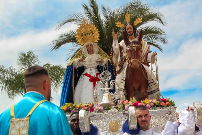 Pasadas las once y media de la mañana iniciábamos la salida procesional de Nuestro Padre Jesús a su entrada en Jerusalén y María Santísima del Amparo Auxiliadora por las calles de nuestro pueblo, siendo la primera procesión de Semana Santa de Álora 2025