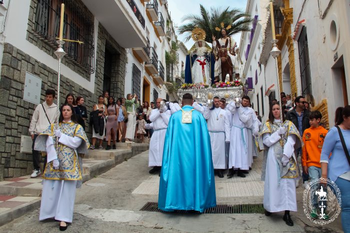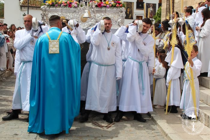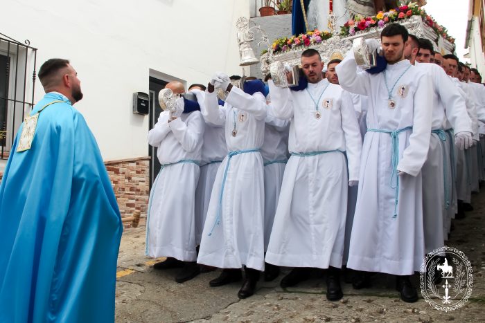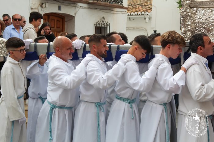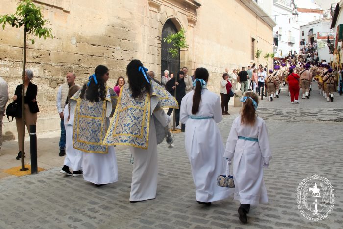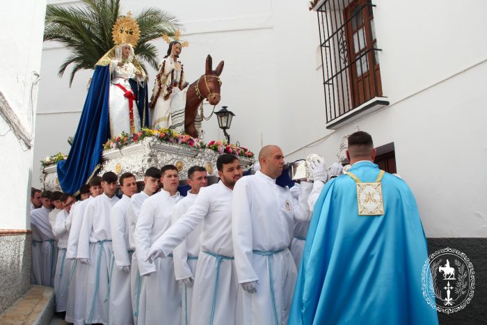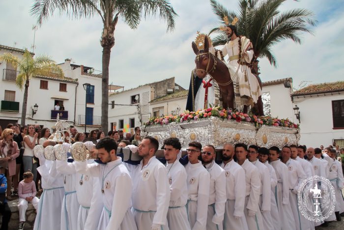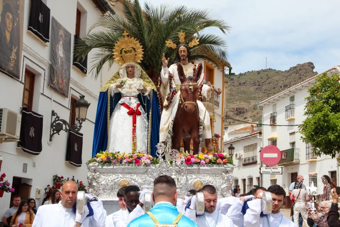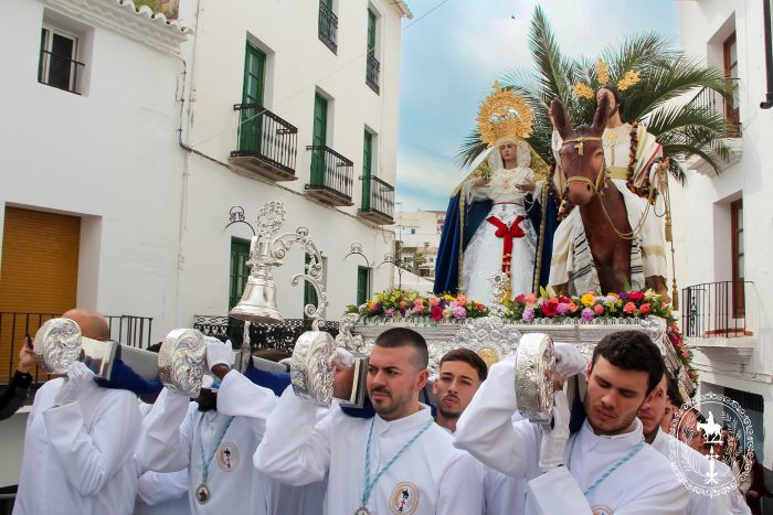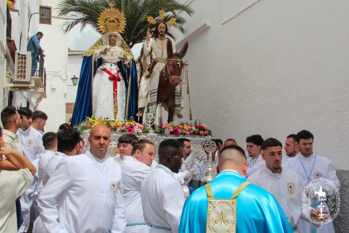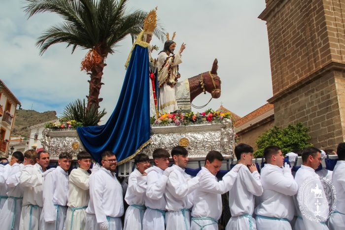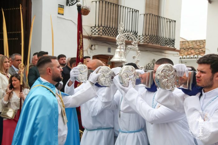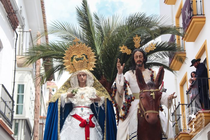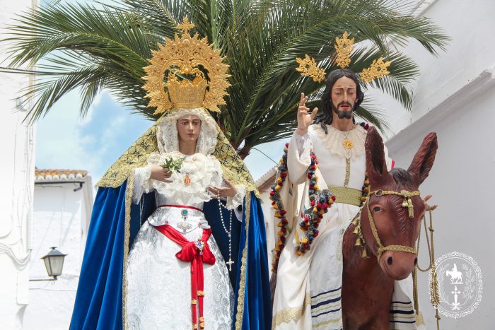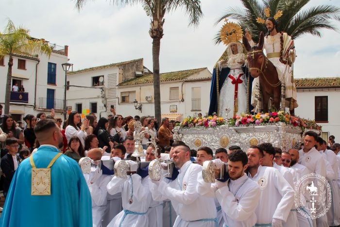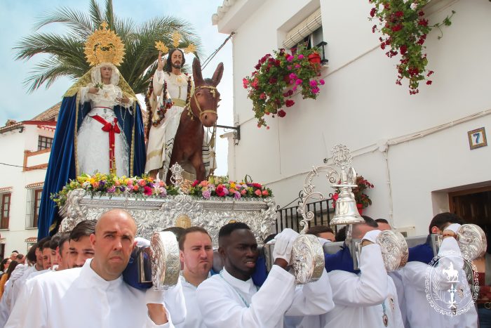 Pasadas las once y media de la mañana iniciábamos la salida procesional de Nuestro Padre Jesús a su entrada en Jerusalén y María Santísima del Amparo Auxiliadora por las calles de nuestro pueblo, siendo la primera procesión de Semana Santa de Álora 2025