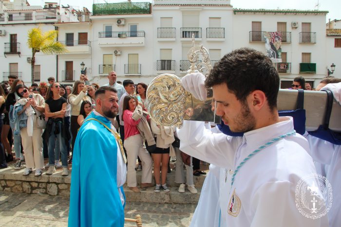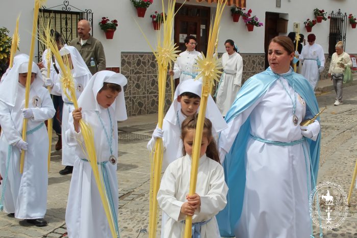 El Alcalde de Álora, Concejales de la Corporación Municipal, el Juez de Paz, Hermanos Mayores y representantes de las Hermandades y Cofradías de Álora nos han acompañado en el cortejo procesional en el que han participado un buen número de nazarenos portando las típicas palmas del Domingo de Ramos. Estas palmas se han repartido a cambio de un donativo que irán destinados a Cáritas Parroquial y la propia Hermandad.