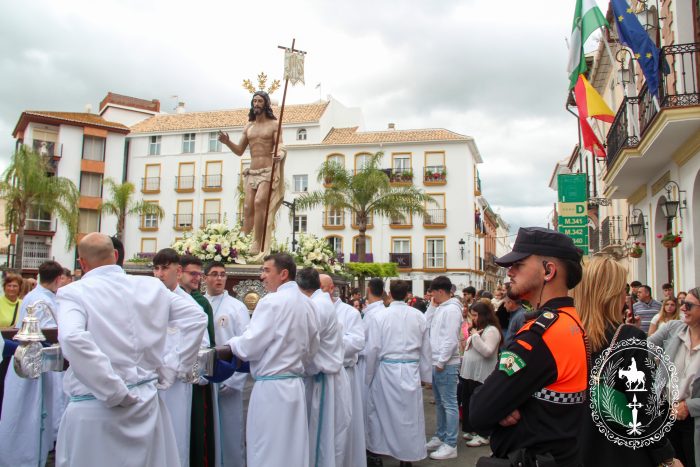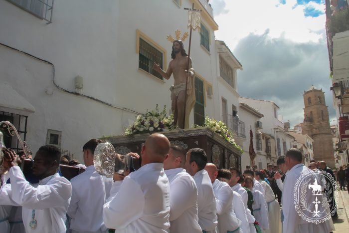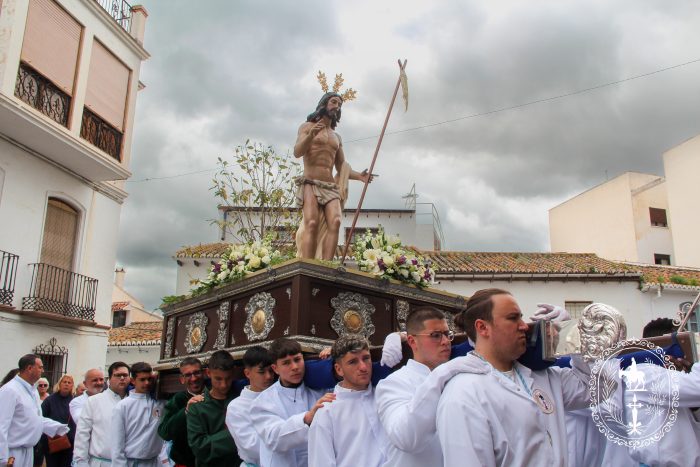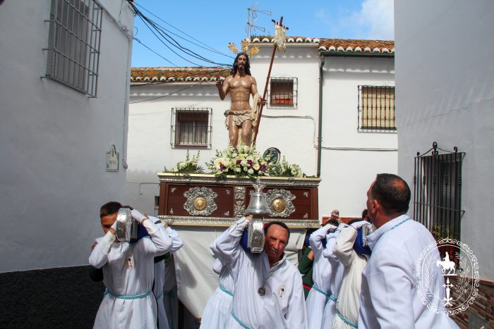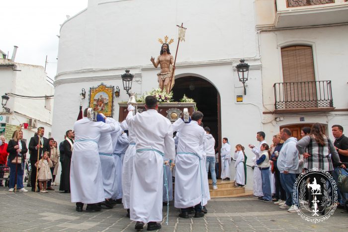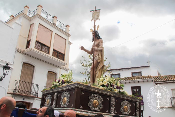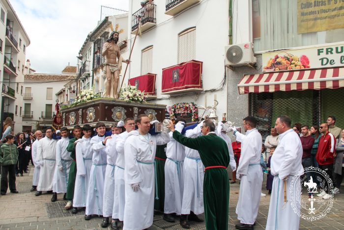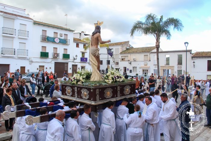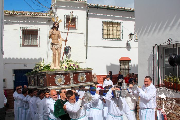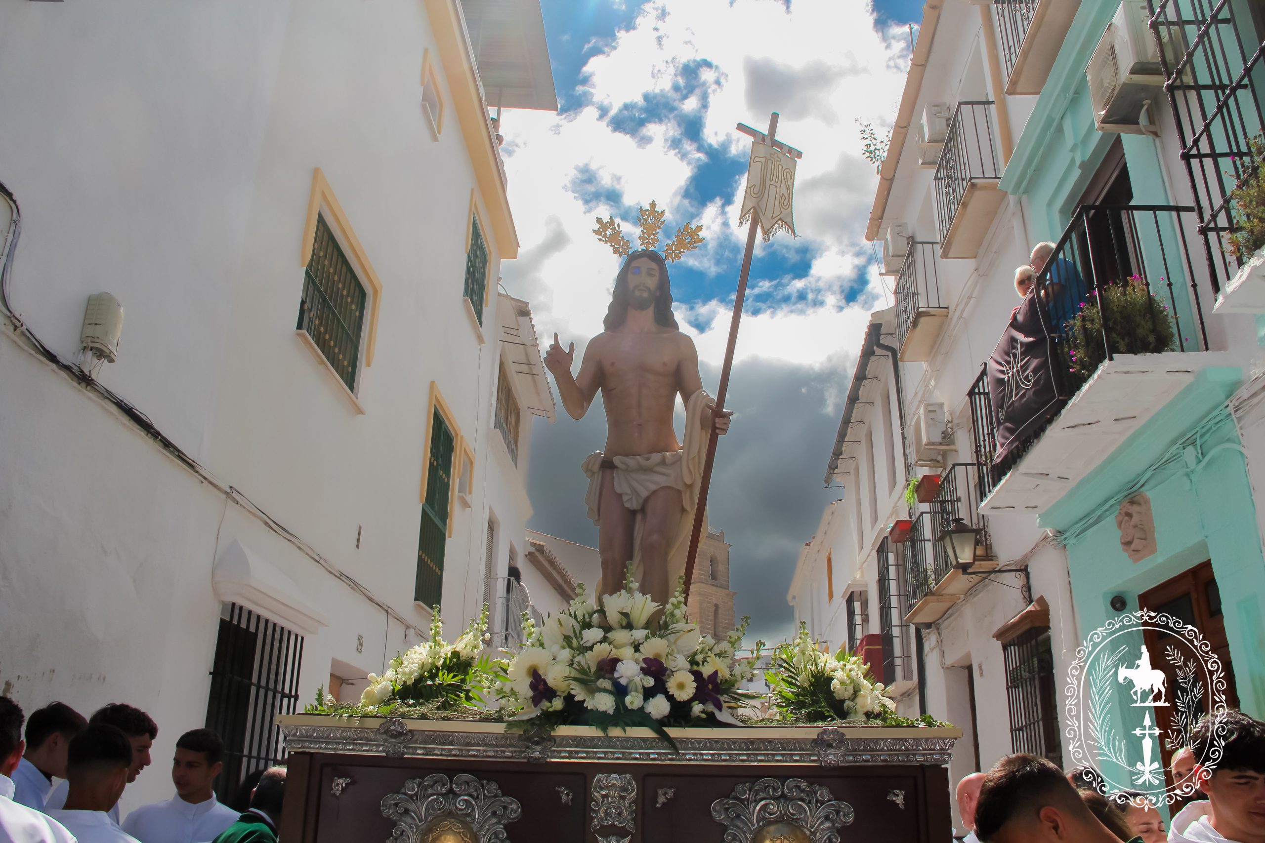 Cerramos las salidas procesionales de la Semana Santa de Álora con la procesión del Santísimo Cristo Resucitado, que ha tenido lugar tras la celebración de la Eucaristía en la Parroquia de Nuestra Señora de la Encarnación presidida por nuestro Párroco y Director Espiritual, el Padre Felipe Manuel Gallego Casco.
