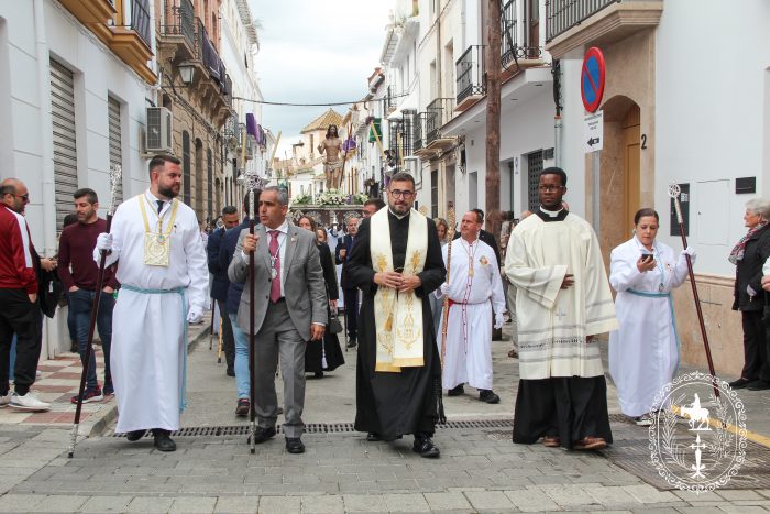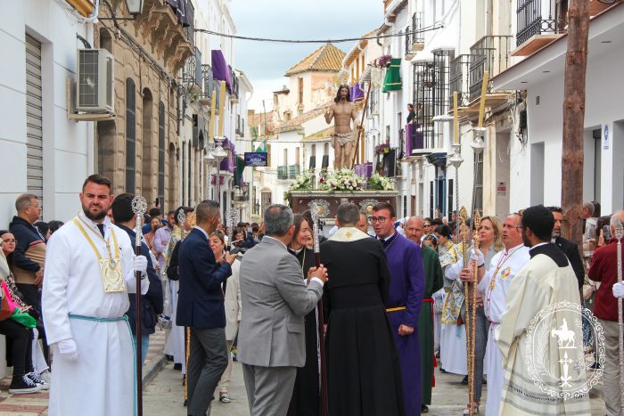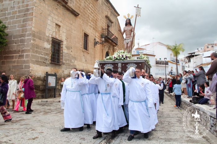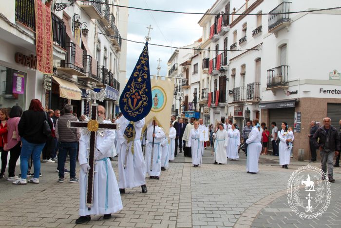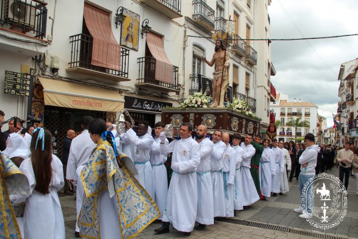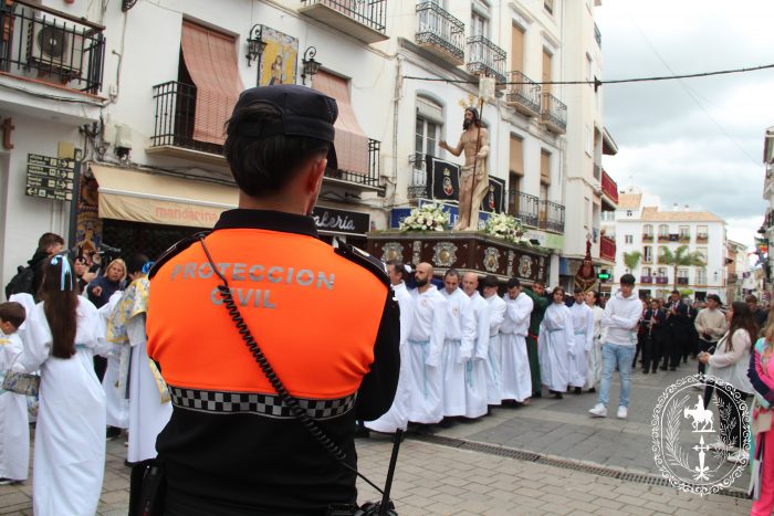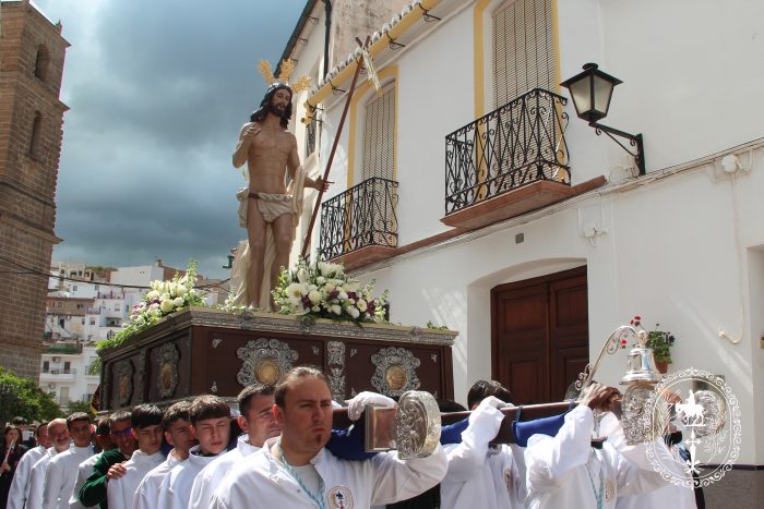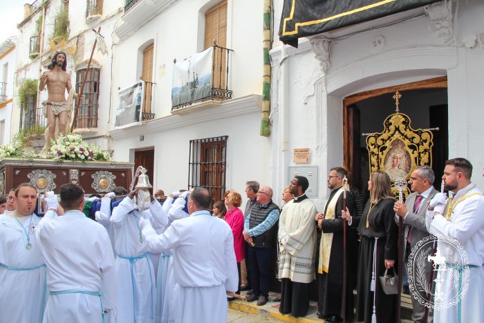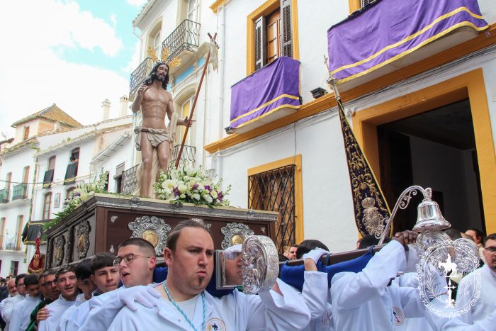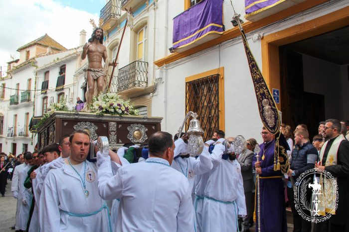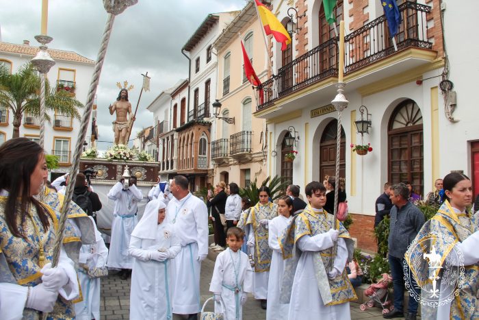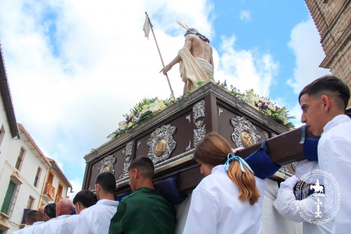 Cerramos las salidas procesionales de la Semana Santa de Álora con la procesión del Santísimo Cristo Resucitado, que ha tenido lugar tras la celebración de la Eucaristía en la Parroquia de Nuestra Señora de la Encarnación presidida por nuestro Párroco y Director Espiritual, el Padre Felipe Manuel Gallego Casco.