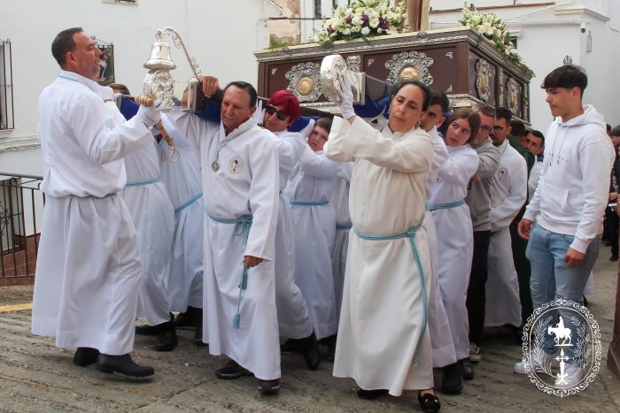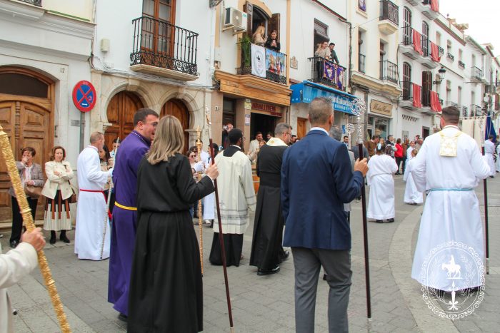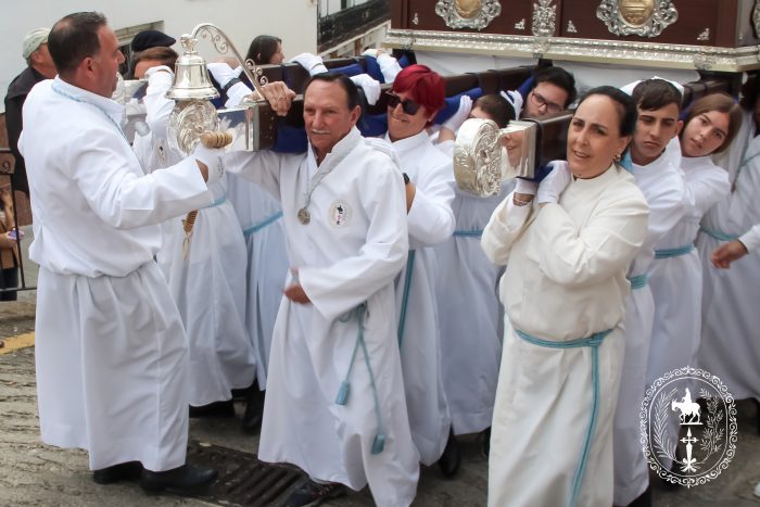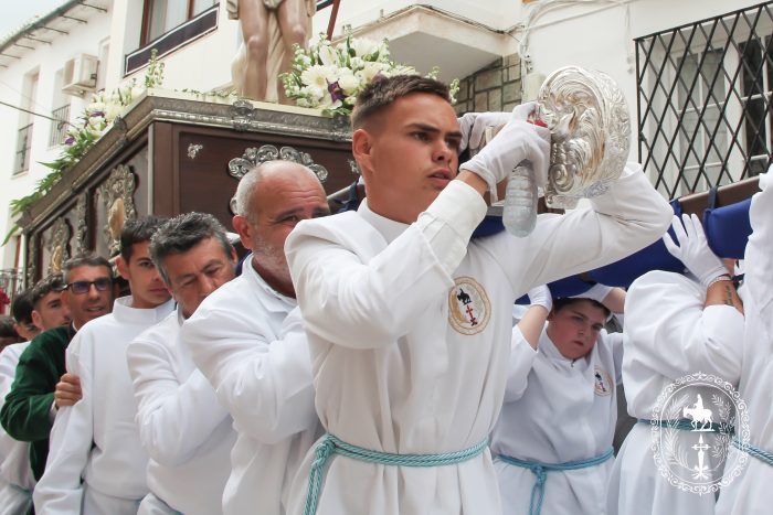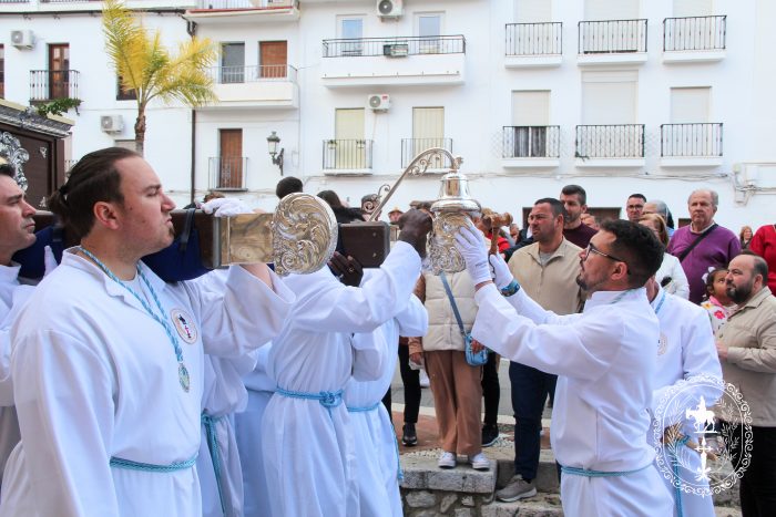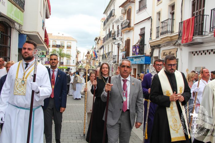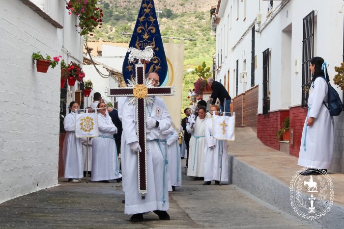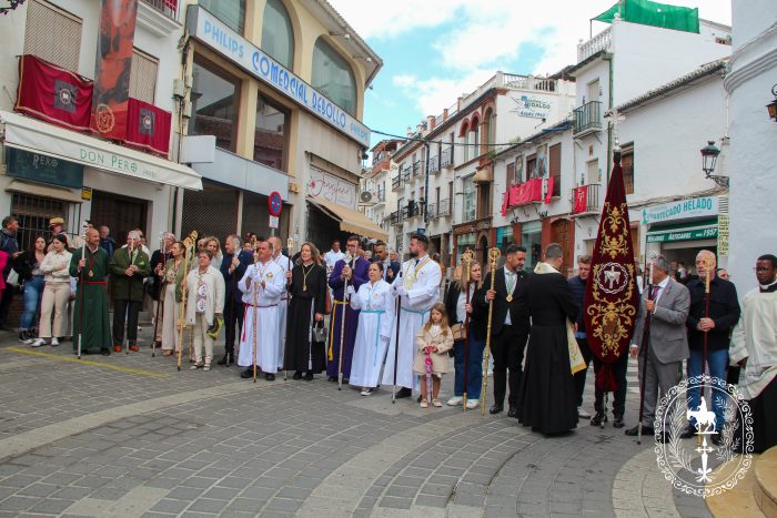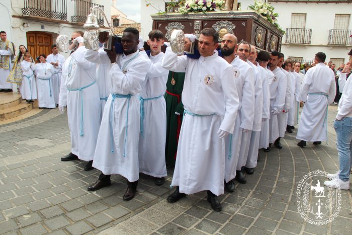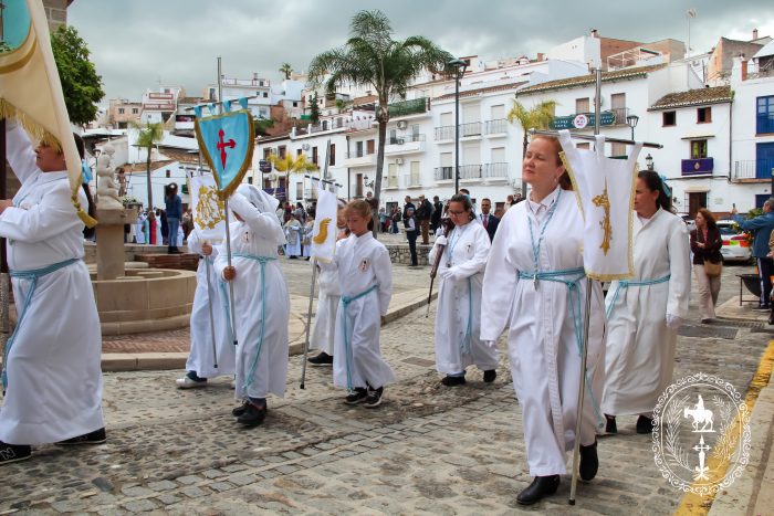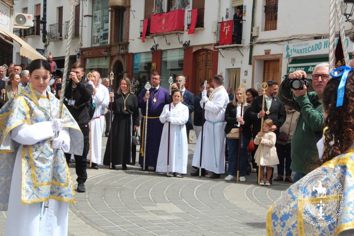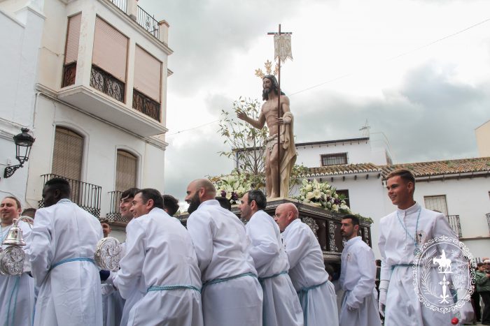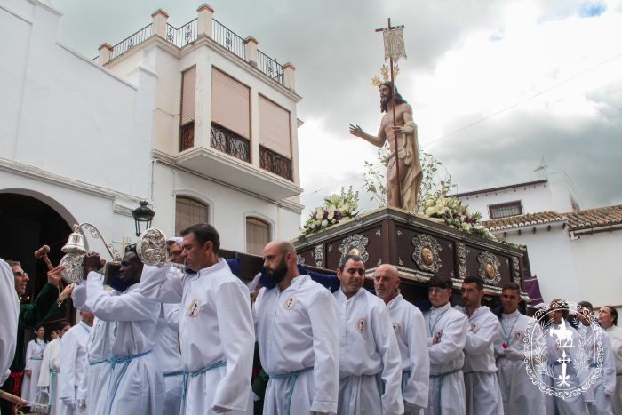 Como se viene haciendo en los últimos años, portadores y nazarenos de las Hermandades y Cofradías de Álora se han unido al cortejo vistiendo las túnicas de sus hermandades, al igual que los Hermanos Mayores, viéndose así un colorido de túnicas que representa la unión de todos en torno a la Resurrección de Jesucristo.
