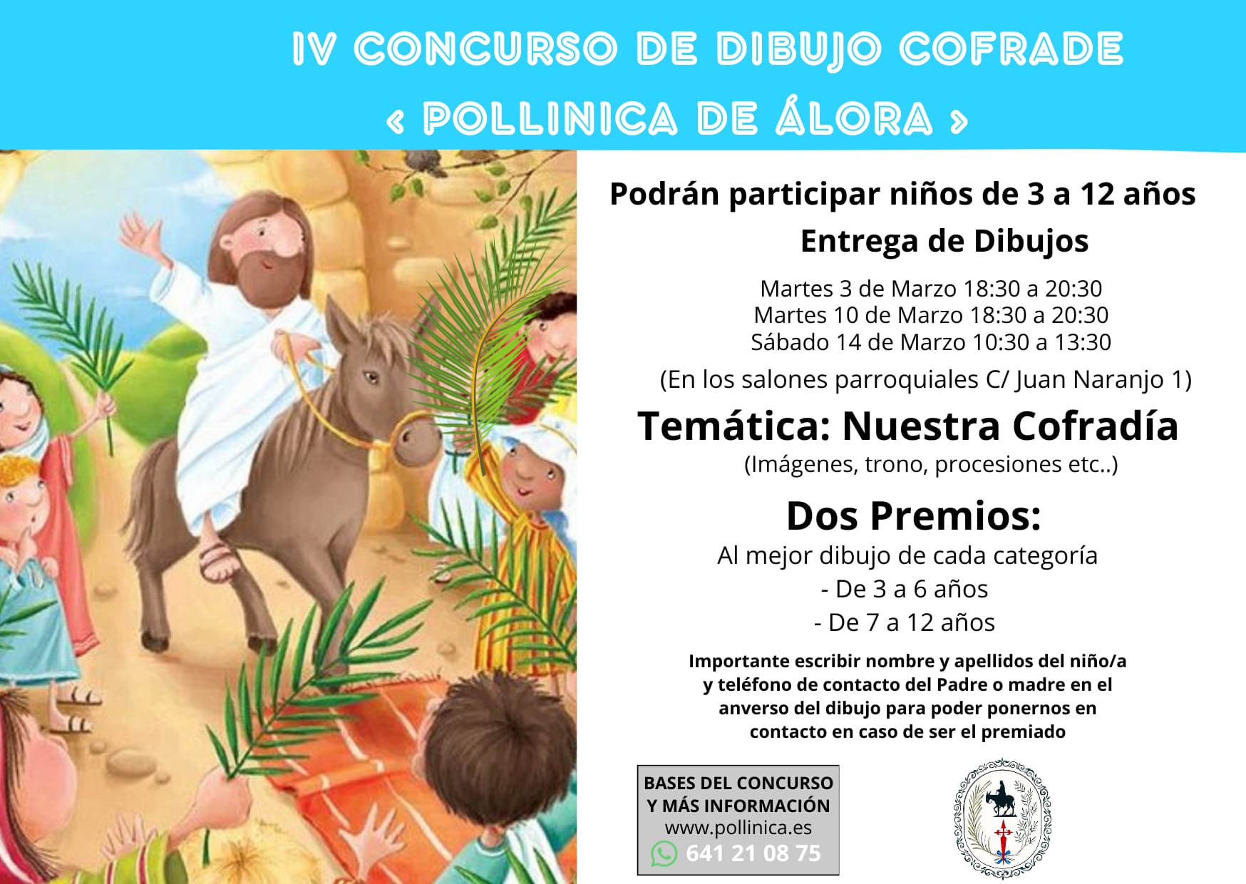 Nuestra Cofradía convoca la segunda edición del Concurso de Dibujo Cofrade «Pollinica de Álora» en el que podrán participar todos los que los niños y niñas que lo deseen en las dos categorías establecidas: